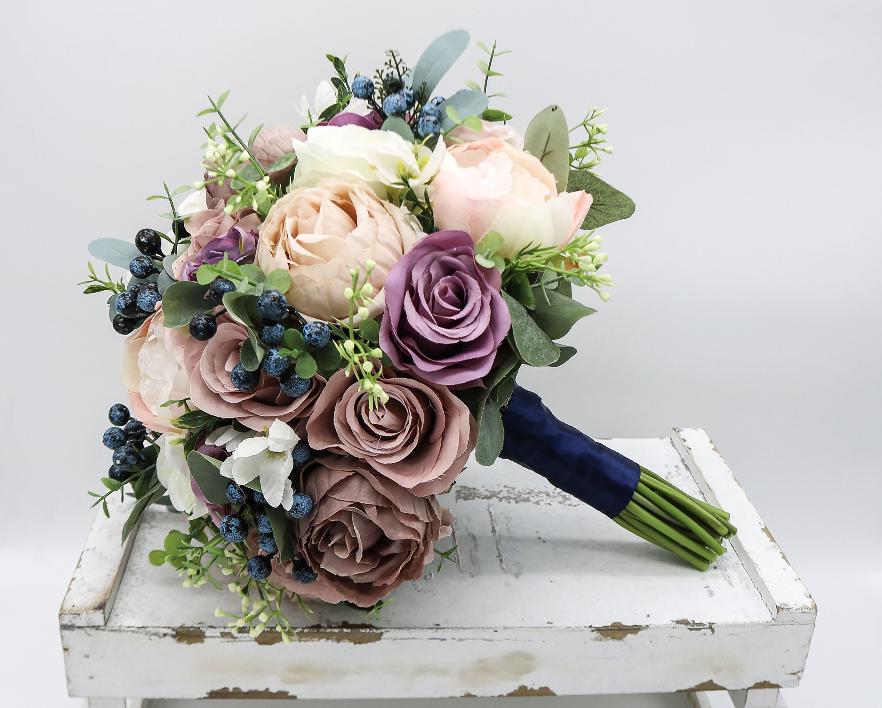Wedding Bouquet Bridal Bouquet Mauve Navy Bouquet Etsy Canada